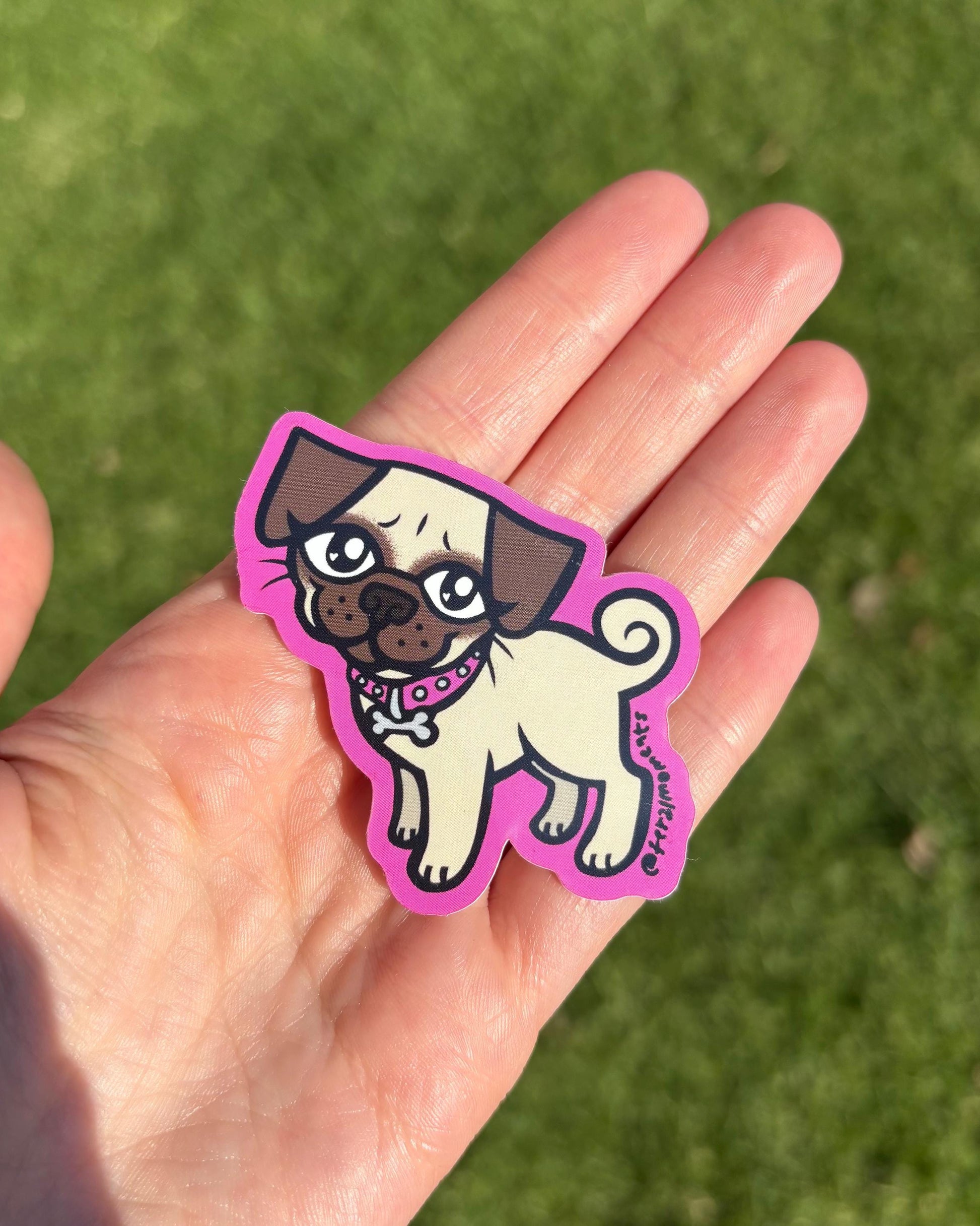 2.1" x 2.2" vinyl sticker with a glossy finish.